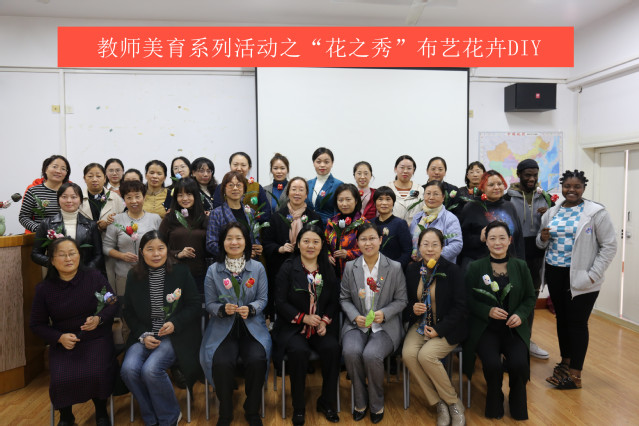 为营造浓厚的校园艺术氛围,帮助教职工提升艺术修养,打造美育空间,10月29日下午,由校工会、妇联主办,国际学院妇联承办的教师美育系列之“让美育之花绽放”(第二期)——‘花之秀’布艺花卉DIY活动在国际学院“秀外慧中”妇女微家活动室举行。校工会主席潘永亮、国际学院党总支书记孙伟、国际学院副院长李丹、女教职工代表及国际学院师生代表参加活动。活动由国际学院副院长李丹主持。