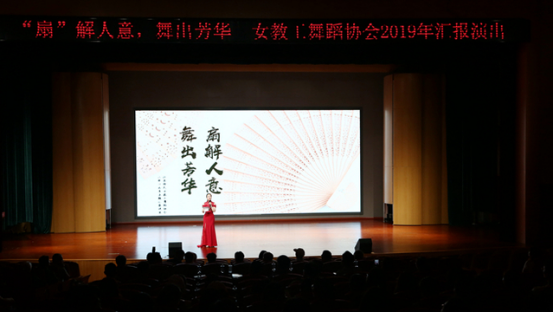 2019年6月5日,“扇”解人意,舞出芳华——我校女子健身舞蹈协会2019年汇报演出在我校马可音乐厅顺利举行,校长周汝光、校工会、妇联、相关部门负责人及师生代表齐观看了演出。