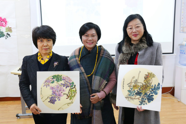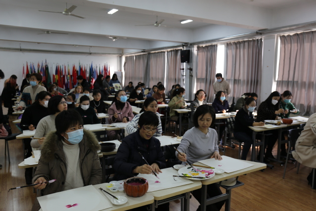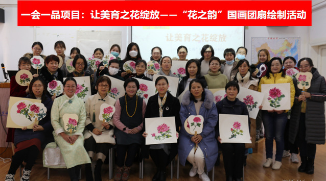 12月17日,由校工会、妇联主办,国际学院承办的一会一品项目教师美育系列之“让美育之花绽放”(第三期)——‘花之秀’国画团扇绘制活动在国际学院“秀外慧中”妇女微家活动室举行。校党委副书记岑红、徐州市妇联党组书记、主席刘红梅及相关单位负责人一行来到了活动现场走访调研。活动邀请了美术学院张勤老师为大家做专业指导,来自全校各学院60余位女性师生来到现场,国际学院副院长李丹主持活动。