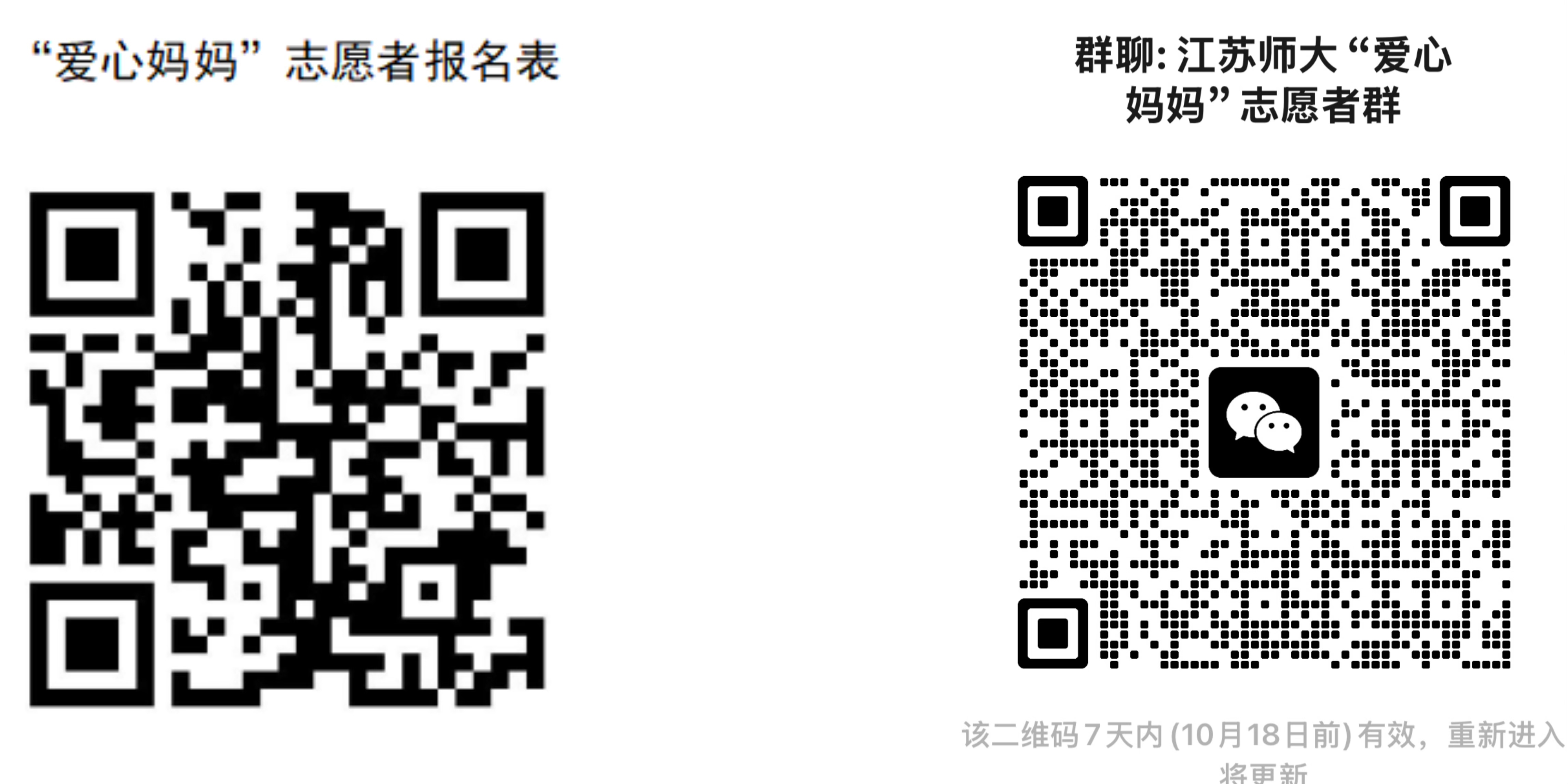 有意向者请自愿填写《“爱心妈妈”志愿者报名表》,于10月15日(周三)下午5:00前扫码完成表格填报并加入微信群。联系人:赵老师,联系电话:83656099。