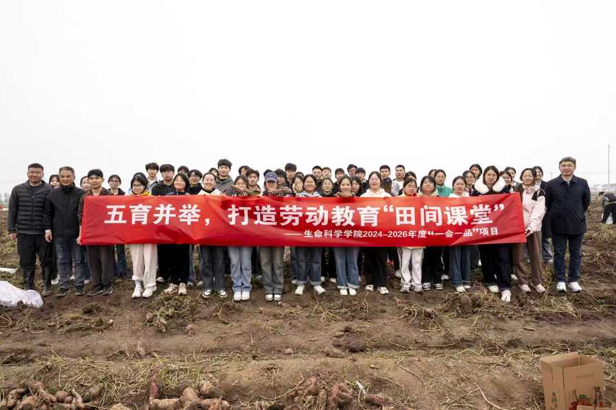 近日,我校生命科学学院在贾汪区江庄镇甘薯种植基地,成功举办“师生共上一堂劳动课”活动。本次活动由校工会(妇联)主办,生科院承办,是一会一品项目“五育并举,打造劳动教育‘田间课堂’”系列活动的重要组成部分。