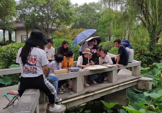 在美术学院建立“芝兰写生社”,长期利用节假日和课后时间,带领学生写生、创作,诵读画论。(2019年夏)