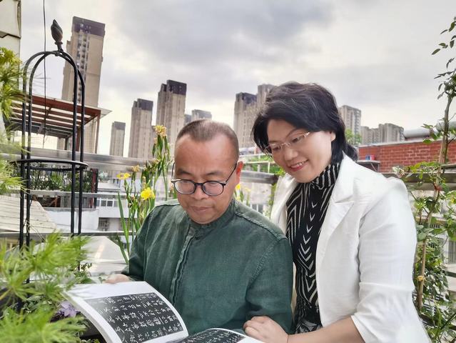 刘淮老师与张勤老师伉俪研赏碑贴。