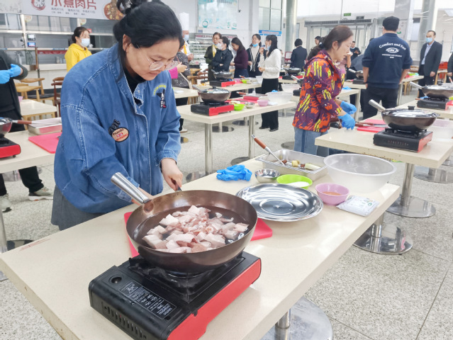 本次烹饪活动由饮食服务中心副主任、高级厨师刘保国担任指导老师,他向大家简单介绍红烧的起源以及他个人做红烧肉的心得,大家在他的指导示范下,切肉、生火、放油…… 经过多道工序,传统名菜红烧肉新鲜出炉,整个场地都飘散着红烧肉的浓郁香气,令人垂涎三尺,大家品尝着自己亲手制作的美食,纷纷表示,此次活动不仅贴近生活,还十分实用,不仅提升了自身技能,回去还可以和家人一起制作,促进家人之间的沟通,活动持续近两个半小时,厨艺交流、品美食,现场欢乐不断。