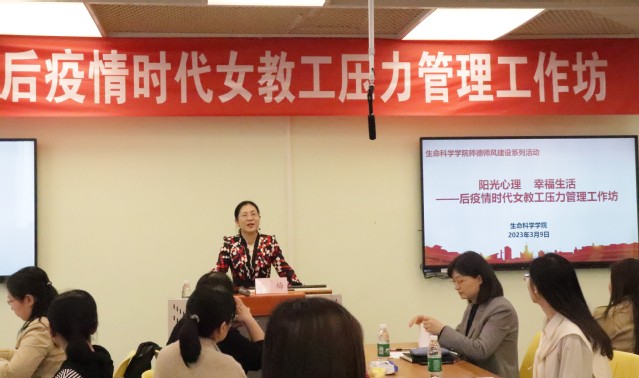 近日,生命科学学院邀请学校心理学专家李梅教授开展了以“阳光心理 幸福生活——后疫情时代女教工压力管理工作坊”为主题的心理减压活动。活动由学院党委副书记李延延主持,学院30余名教工参加本次活动。