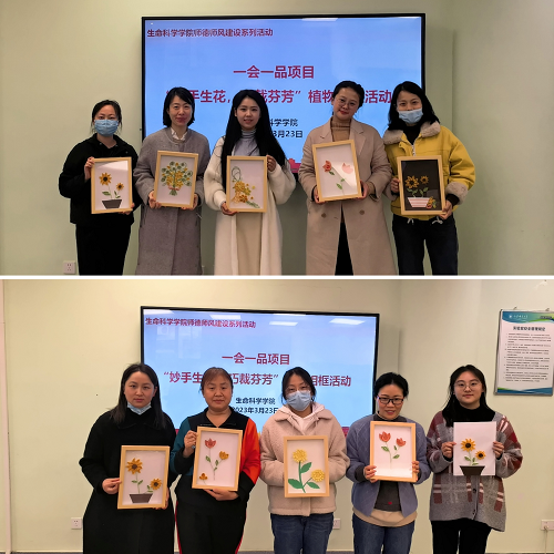 3月23日下午,由校工会、妇联主办,生命科学学院承办的一会一品项目——“妙手生花,巧裁芬芳”植物相框制作活动在泉山校区26#104教室顺利举办。来自全校的30多名教职工欢聚一堂,生命科学学院党委书记汪颖参加活动,活动由生命科学学院党委副书记、妇联主席李延延主持。