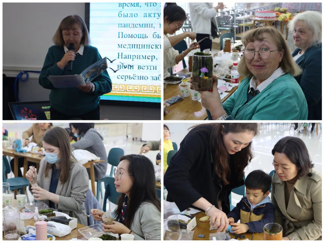 学院外事副院长王莉宣布活动启动后,三位俄罗斯外教分别结合活动主题介绍了俄罗斯的民俗文化、风土人情及地理地貌,由此引入活动主题——俄式森林微景观手工制作。