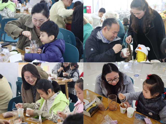 随后,园艺老师带领着老师和孩子们边品味俄罗斯特色小食,边井然有序地利用砂石、苔藓、多肉等材料进行创作,共同探索指尖上的春日秘密。一土一铲种下春光的美好,一份份小小的创意微景观也满载着大家对生活的热爱。活动持续了两个小时,热烈温馨的气氛让大家流连忘返。