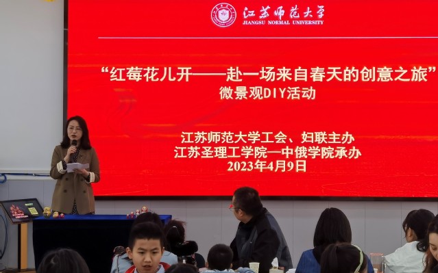 4月9日上午,由校工会、妇联主办,江苏圣理工学院—中俄学院承办的一会一品项目“红莓花儿开——赴一场来自春天的创意之旅”微景观DIY活动在泉山校区七食堂顺利举办。活动吸引了校内45组家庭共90余人共同参与,活动由院党委副书记文雯主持。