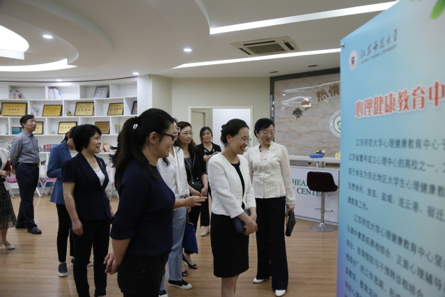 康莉副主席一行调研走访了我校心理健康教育中心、雅润女子学堂,听取了我校妇联工作的汇报,对我校全方位开展巾帼文明创建,高度关心关注青年女教师的发展和家庭生活、女大学生成长成才的做法表示肯定。她指出,今年是全面深化基层妇联改革取得决定性成果之年,希望江苏师大女性师生积极融入社会实践,在引领妇女工作开展、推进妇女问题解决、发挥两个“独特作用”等方面形成品牌效应和示范引领效应,全面展示新时代江苏女性忠诚、坚韧、创新、慧雅的风采风貌,为全省教育系统妇联工作提供可借鉴的样板。