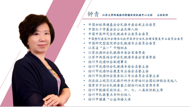 主讲嘉宾:钟青  主任医师(徐州市肿瘤医院乳腺中心主任)