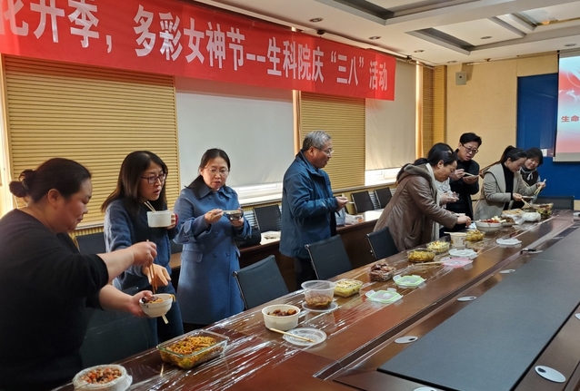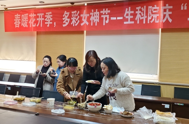 为庆祝“三八”国际妇女节,3月8日中午,生命科学学院妇联在1号楼109会议室举办了“春暖花开季,多彩女神节”——庆“三八”美食鉴赏活动。