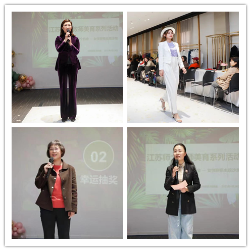 此次活动得到了哥弟服装公司的大力支持,他们精心布置了唯美的、舒适的活动场地。活动首先由校妇联主席裴笛致辞,她简要说明了此次活动举办的目的与意义,热情鼓励女教师们去发现美、追求美。活动在马院匡艳丽老师主持下、在温馨和美的氛围中有序开展。一个个标致的模特姑娘走上T台,展现了青春的活力和美丽;服装专业搭配师形象生动地讲解了服装穿搭的技巧;师大女教师们踊跃登台,争当模特,勇于尝试不同风格的服装……